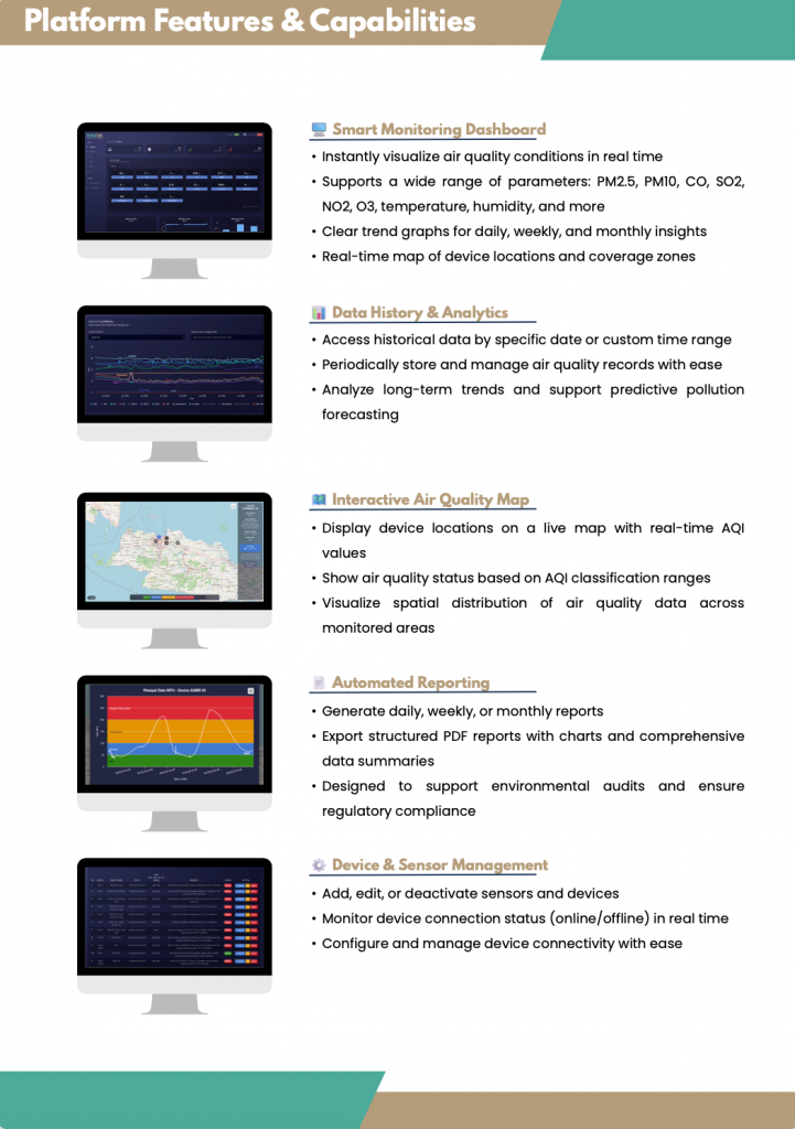 Our IEMS platform is engineered to provide highly accurate and real-time environmental data through advanced sensor technology. With an intuitive online dashboard, users can easily access, analyze, and act on vital environmental information anytimeand anywhere
