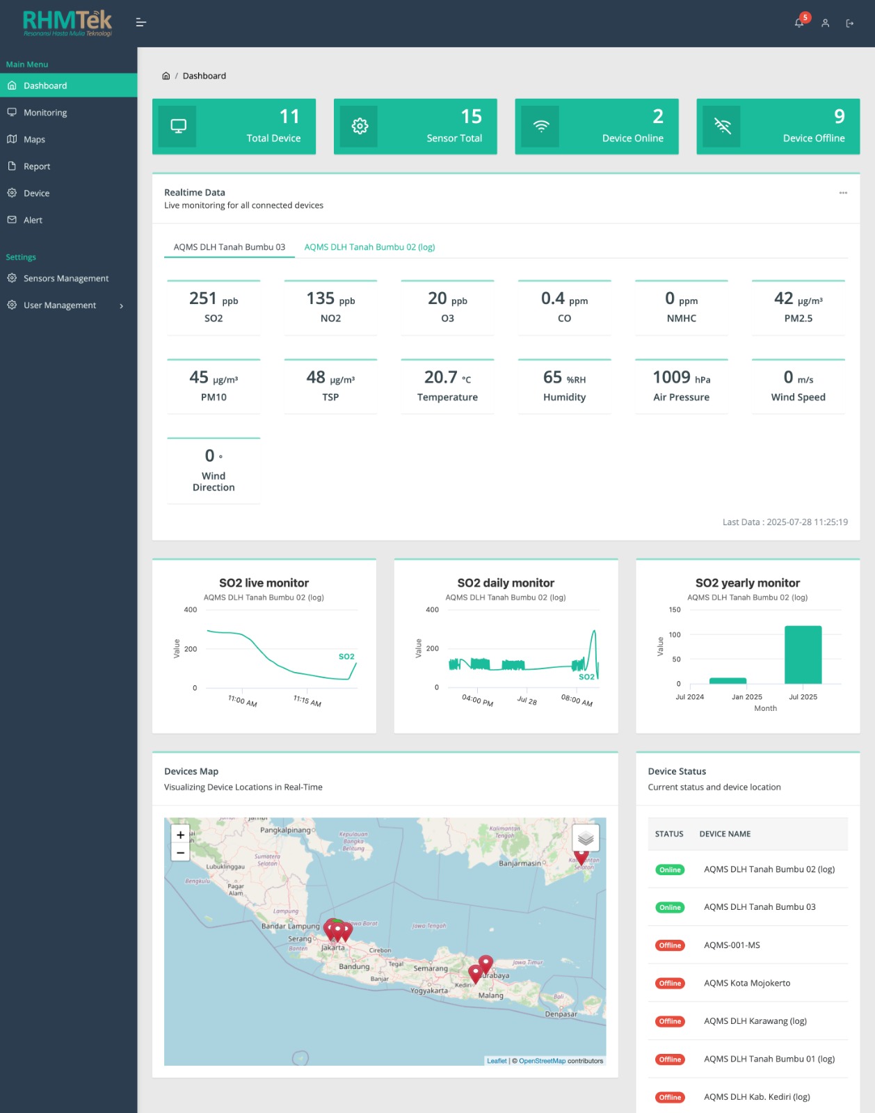 IEMS (Integrated Environmental Monitoring System) is a comprehensive platform designed to monitor environmental conditions in real time. It combines high-precision sensors with an intuitive online dashboard, enabling users to remotely track data such as air quality, temperature, humidity, and more from any device.