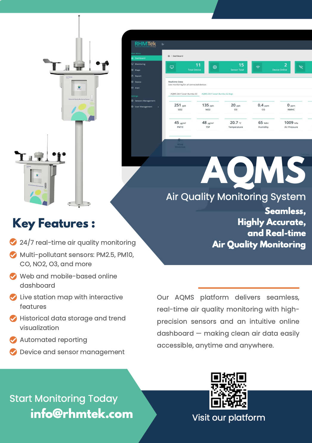 Our IEMS platform is engineered to provide highly accurate and real-time environmental data through advanced sensor technology. With an intuitive online dashboard, users can easily access, analyze, and act on vital environmental information anytimeand anywhere